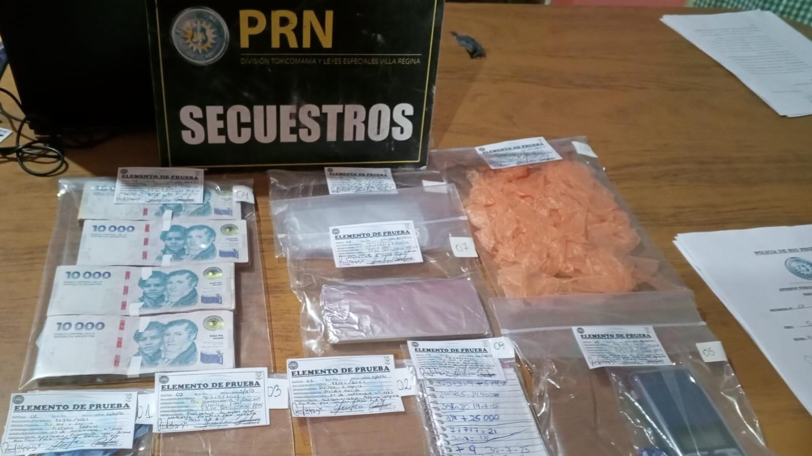 En el marco de una investigación judicial de dos meses, la Policía de Río Negro concretó este miércoles dos allanamientos simultáneos en Villa Regina, que arrojaron resultados positivos e incluyeron el secuestro de cocaína, dinero en efectivo, celulares y elementos vinculados al fraccionamiento de droga. Un hombre quedó imputado por infracción a la Ley 23.737.