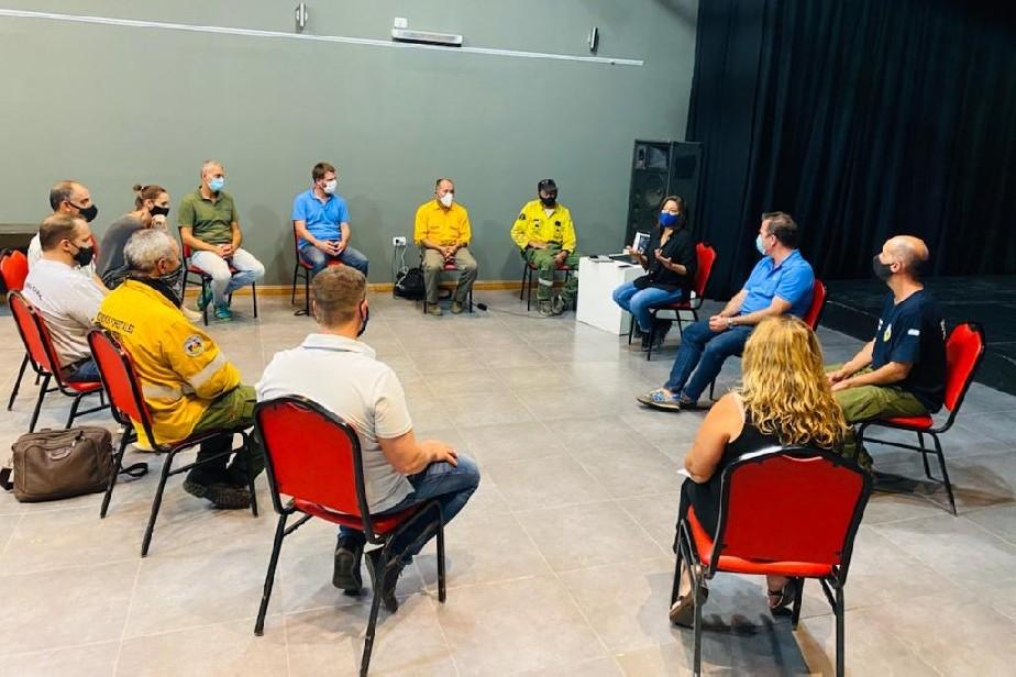 La Gobernadora Arabela Carreras encabeza en El Bolsón una reunión del Comité Operativo por el incendio forestal que afecta la región desde el pasado 24 de enero. Participan autoridades de Protección Civil, fuerzas de seguridad, el Municipio de El Bolsón, funcionarios del Gabinete Provincial, bomberos, entre otros.